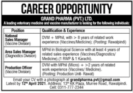 Vacancies in Grand Pharma Pvt Limited Advertisement April 2021