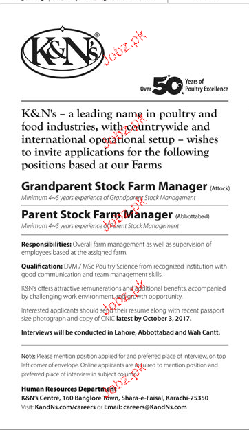 Apply as per details in job advertisement. Login to view further details of how to apply via https://www.jobz.pk online.
