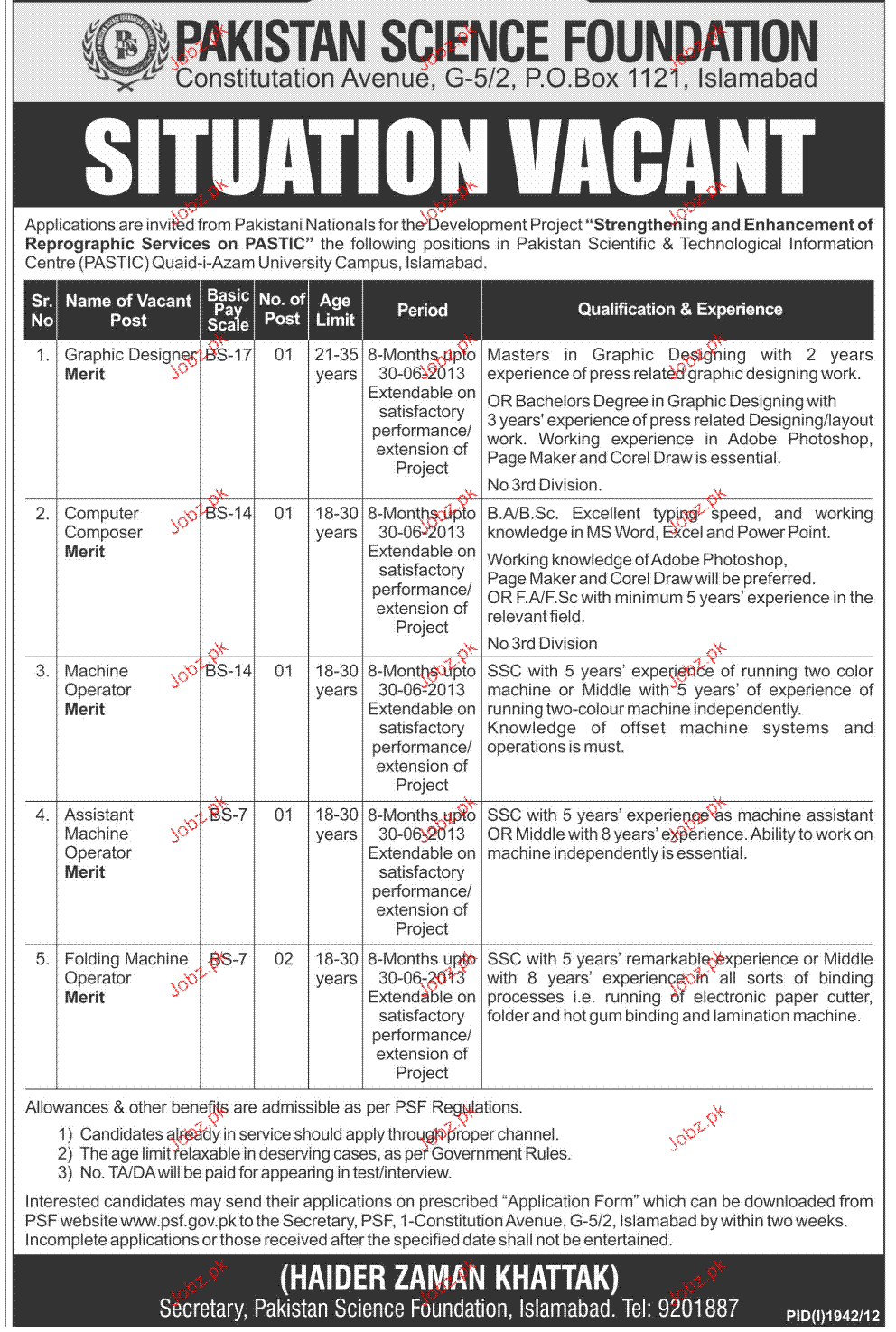 Apply as per details in job advertisement. Login to view further details of how to apply via https://www.jobz.pk online.