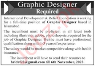 Vacant posts including graphic designer are announced in International Company Islamabad, islamabad Islamabad Pakistan as per 30 October 2022 advertisement in daily Jang Newspaper. Educational qualifications required Intermediate etc.