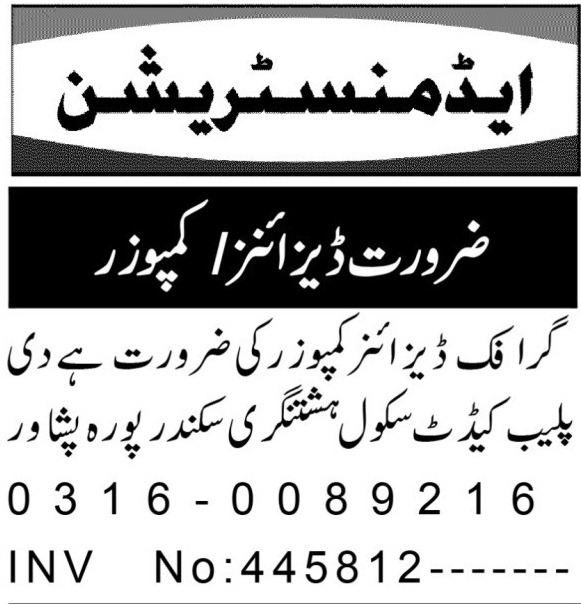 The Plebe Cadet School invites applications for job positions advertised in daily Aaj dated 10 October 2025 for following vacancies in Hashtnagri Peshawar, peshawar Khyber Pakhtunkhwa KPK Pakistan.