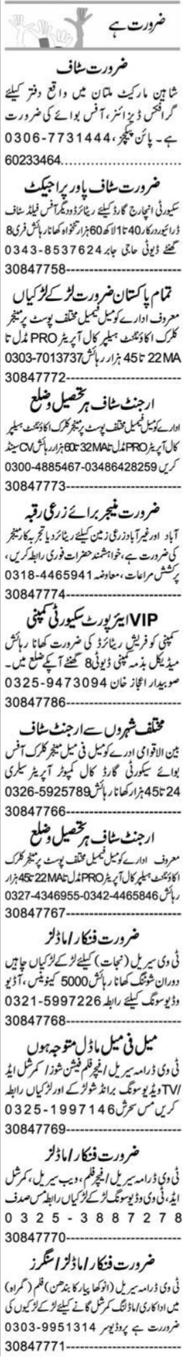 Vacant posts including helper, accountant, call computer operator, manager, actor, model, pro, office boy, singer, office staff, clerk, call operator, driver, farm manager, security guard, security incharge, public relation officer, graphic designer and field staff are announced in Private Company Multan, multan Punjab Pakistan as per 5 April 2023 advertisement in daily Express Newspaper. Preferred Education is Bachelor, Intermediate, Matric and Middle etc.
