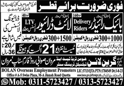 Green Line Human Trade Test & Technical Training Center latest Overseas Driving jobs and others can be applied till August 21, 2023 or as per closing date in newspaper ad. Read complete ad online to know how to apply on latest Green Line Human Trade Test & Technical Training Center job opportunities. Facilities like accommodation, transport and medical may be provided.