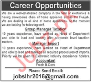 Group Manager Taxation, Manager Import & Accountant Jobs