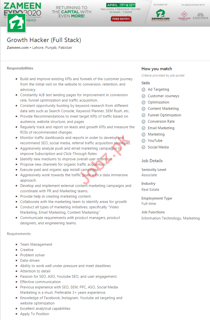 Growth Hacker Full Stack Job 2020 In Lahore