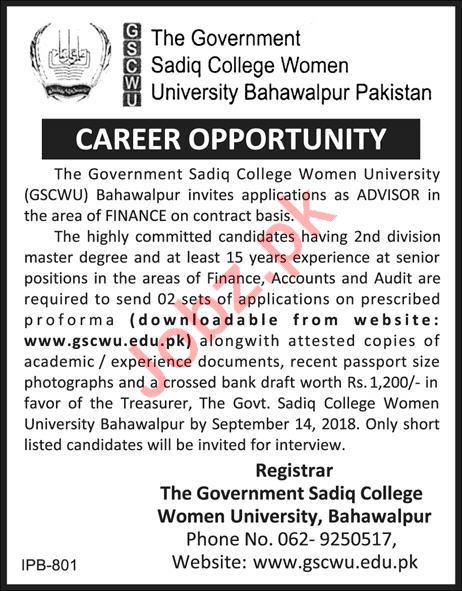 Latest The Government Sadiq College Women University Management Posts Bahawalpur 2025