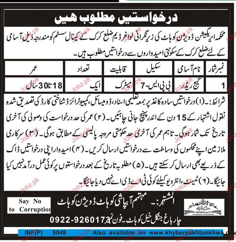 Apply as per details in job advertisement. Login to view further details of how to apply via https://www.jobz.pk online.