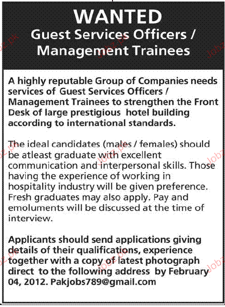Apply as per details in job advertisement. Login to view further details of how to apply via https://www.jobz.pk online.