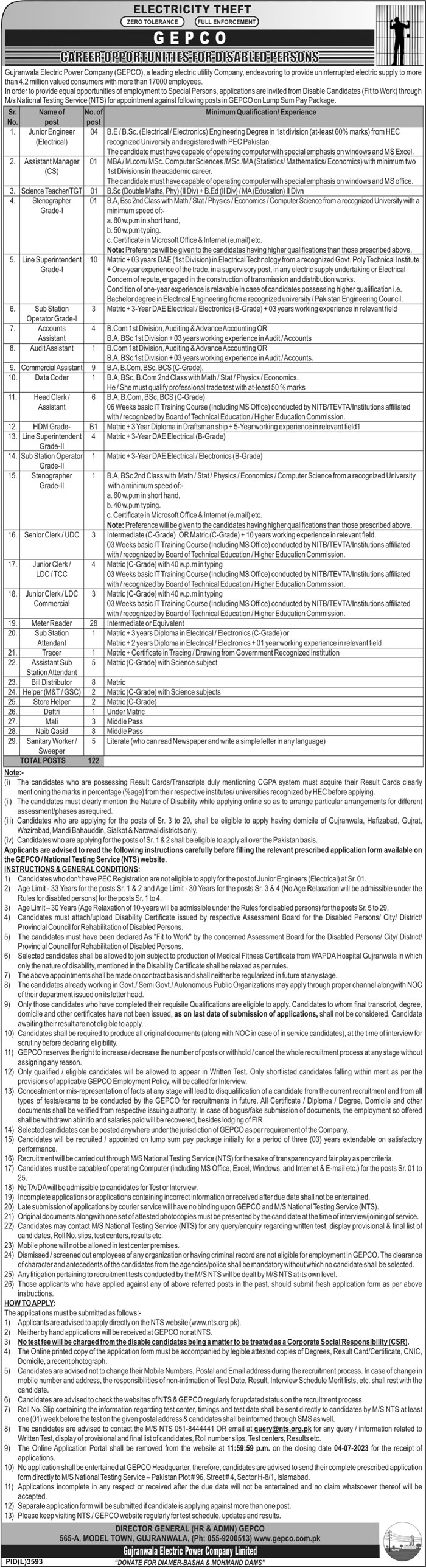 Vacancies in Gujranwala Electric Power Company GEPCO Advertisement June 2023