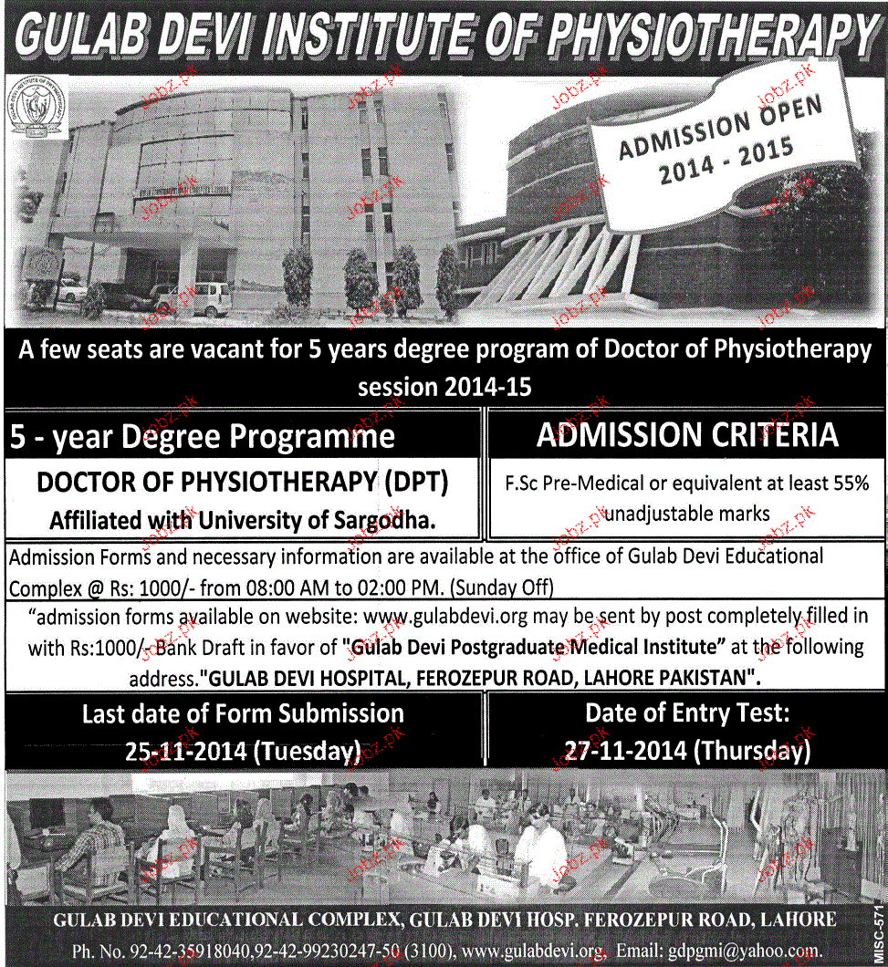 Gulab Devi Postgraduate Medical Institute Admission in DPT in Lahore. Read newspaper ad for exact details.