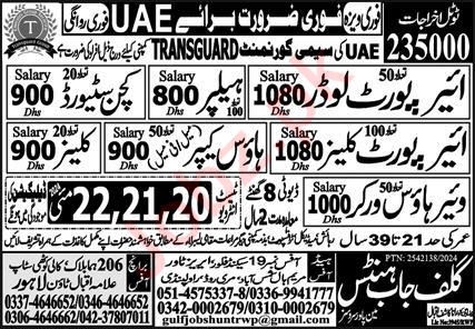 Gulf Job Hunts Manpower Services invites applications for job positions advertised in daily Express dated 19 May 2024 for following vacancies in Abu Dhabi, dubai UAE.