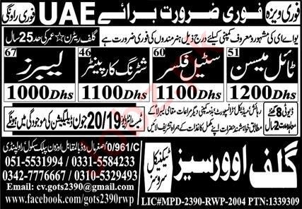 Gulf Overseas Technical Services invites applications for job positions advertised in daily Express dated 18 June 2023 for following vacancies in Abu Dhabi, dubai UAE.