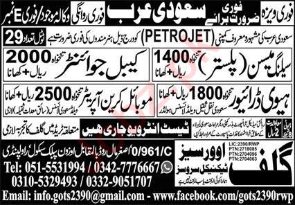 Gulf Overseas Technical Services jobs advertisement dated about 21 July 2024 in daily Express Newspaper invites application for the vacant post of mobile crane operator, selling mason, htv driver and cable jointer in Makkah, makkah Saudi Arabia. Preferred Education is Matric, Primary and Middle etc.
