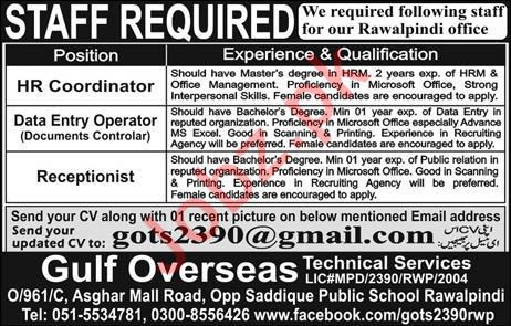 Gulf Overseas Technical Services Jobs In Rawalpindi