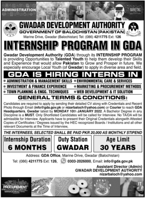Gwadar Development Authority GDA Internship Program 2022