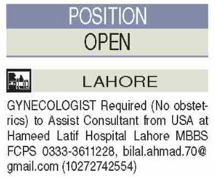 Hameed Latif Hospital Lahore, lahore Punjab Pakistan invites applications from eligible candidates for the post of gynaecologist as per advertisement of October 22, 2022 published in daily Dawn Newspaper. Candidates with Others, MBBS and P.G Diploma etc. educational background will be preferred.