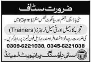 Gym Trainers Jobs 2021 in Jhelum & Sialkot