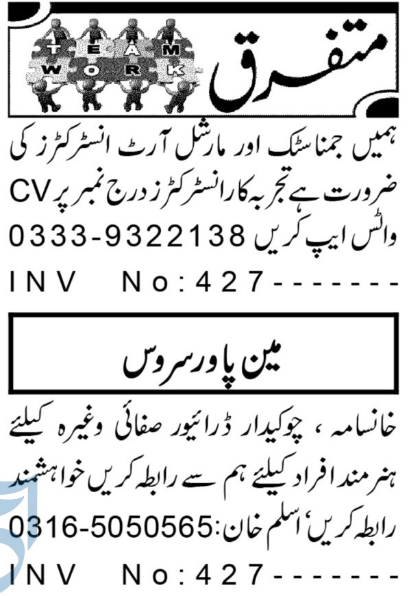 Latest Human Resource jobs and others Classifieds jobs in Private Company closing date is around January 14, 2024, see exact from ad. Read complete ad online to know how to apply on latest Private Company job opportunities. Some jobs in Private Company may require skills like Sports, Cooking and Driving.
