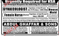 Gynecologist And Female Nurses Job Opportunity