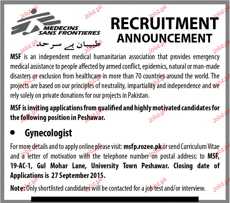 Apply as per details in job advertisement. Login to view further details of how to apply via https://www.jobz.pk online.