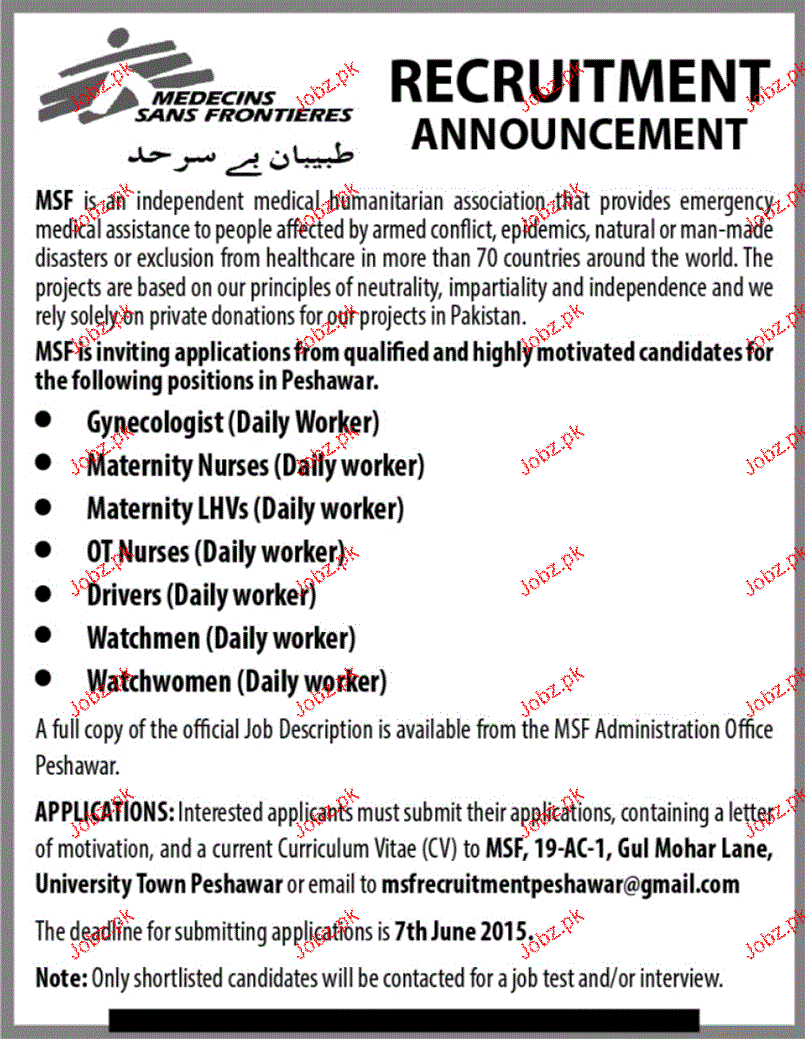 Apply as per details in job advertisement. Login to view further details of how to apply via https://www.jobz.pk online.