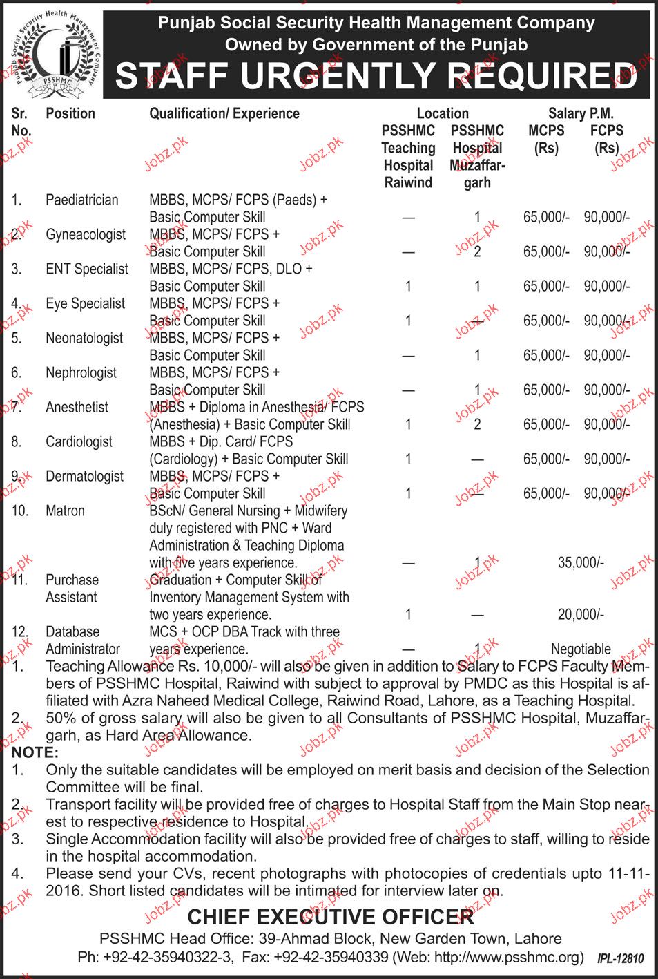 Apply as per details in job advertisement. Login to view further details of how to apply via https://www.jobz.pk online.