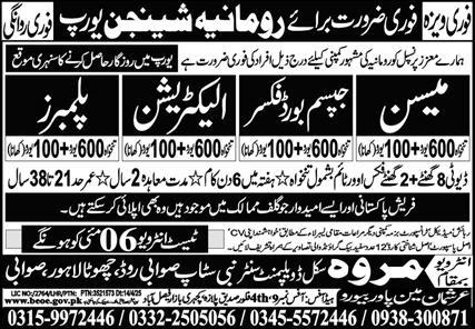 Marwa Skill Development Center is looking for candidates for following posts as per job advertisement published in daily Express Newspaper of April 30, 2025 for location Romania, romania Romania:
