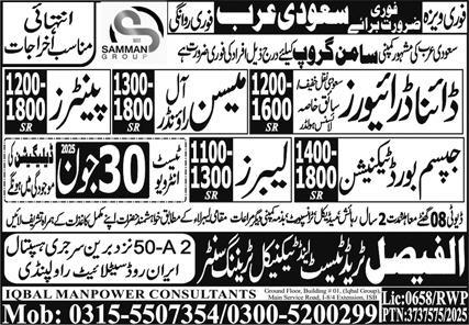 Al Faisal Trade Test & Technical Training Center is looking for candidates for following posts as per job advertisement published in daily Express Newspaper of June 28, 2025 for location Jeddah, taif Saudi Arabia:
