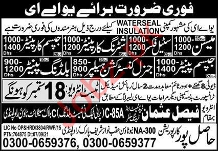 Vacancies in Faisal Usman Overseas Employment Promoters Advertisement September 2021
