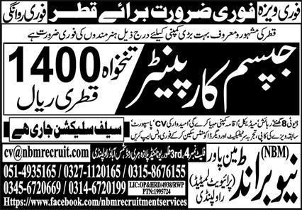 New Brand Manpower invites applications for job positions advertised in daily Express dated 25 January 2024 for following vacancies in Qatar, qatar Qatar.