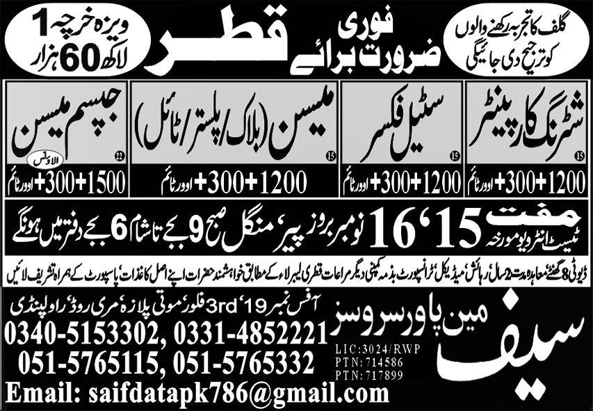 Latest Saif Manpower Services Construction Posts Qatar 2025