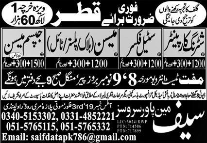 Latest Saif Manpower Services Construction Posts Qatar 2025