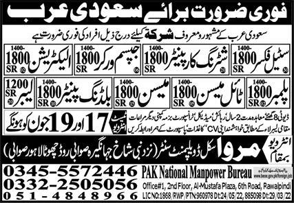 Vacant posts including gypsum worker, labor, plumber, electrician, mason, tile mason, building painter, shuttering carpenter and steel fixer are announced in Marwa Skill Development Center Jeddah, jeddah Saudi Arabia as per 14 June 2022 advertisement in daily Express Newspaper. Intermediate, Matric and Middle etc. educational qualification will be preferred.