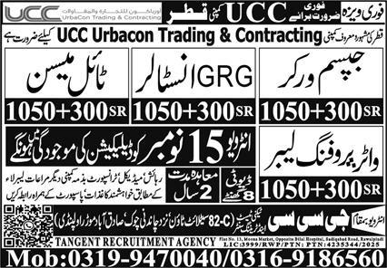 GCC Techni Test & Training Center Doha, doha Qatar invites applications from eligible candidates for the post of tile mason, gypsum worker, water proofing labor and grg installer as per advertisement of November 13, 2025 published in daily Express Newspaper. Preferred Education is Intermediate and Matric etc.