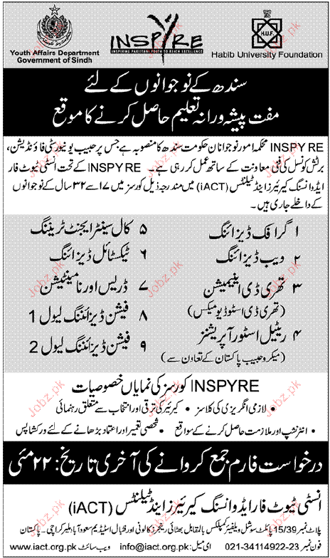 Admission Open in Graphic Designing, Call Center Agent Training, Web Designing etc Courses in Habib University Foundation in Karachi Read newspaper ad for exact details.