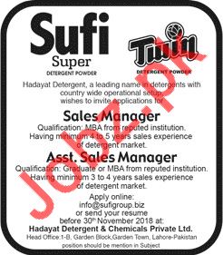 Hadayat Detergent & Chemicals Private Ltd Jobs 2018