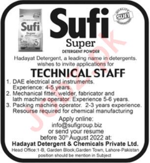 Vacancies in Hadayat Detergent & Chemicals Pvt Ltd Advertisement August 2022