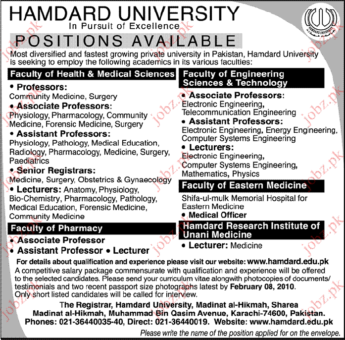 Hamdard University Saff required