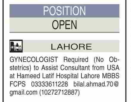 Vacant posts including lady doctor, doctor and gynecologist are announced in Hameed Latif Hospital Lahore, lahore Punjab Pakistan as per 24 September 2022 advertisement in daily Dawn Newspaper. Preferred Education is MBBS and Others etc.