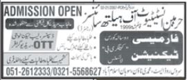Harmain Institute of Health Sciences is offering admissions for courses in Pharmacy Technician, Dispenser, Lab Technology, OTT and Radiographer in Islamabad Pakistan 2021. Read newspaper ad for exact details.