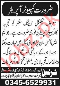 Harmain Trade Test Lahore Jobs 2020 For Computer Operator