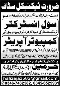 Harmain Trade Test & Technical Training Center is looking for candidates for following posts as per job advertisement published in daily Express Newspaper of April 8, 2023 for location Lahore, lahore Punjab Pakistan: