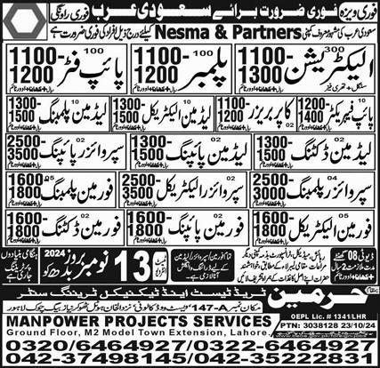Harmain Trade Test & Technical Training Center is looking for candidates for following posts as per job advertisement published in daily Express Newspaper of November 10, 2024 for location Riyadh, riyadh Saudi Arabia:
