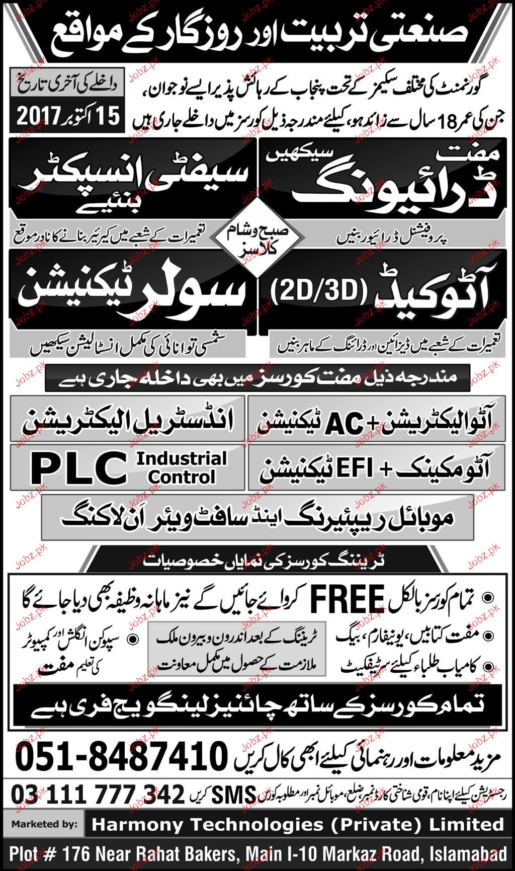 Harmony Technologies Private Limited Admission in Courses in Islamabad. Read newspaper ad for exact details.