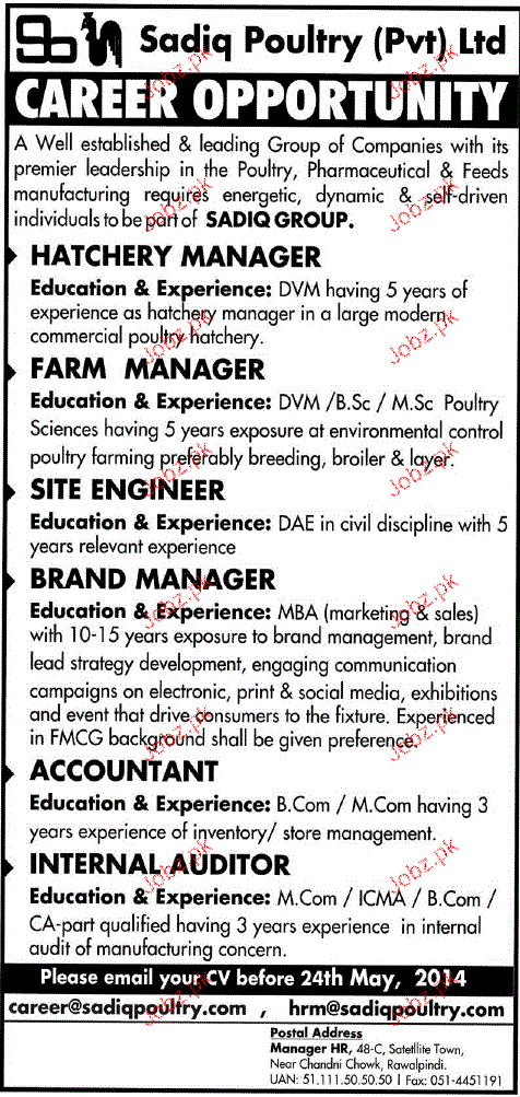 Apply as per details in job advertisement. Login to view further details of how to apply via https://www.jobz.pk online.