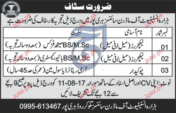 Apply as per details in job advertisement. Login to view further details of how to apply via https://www.jobz.pk online.