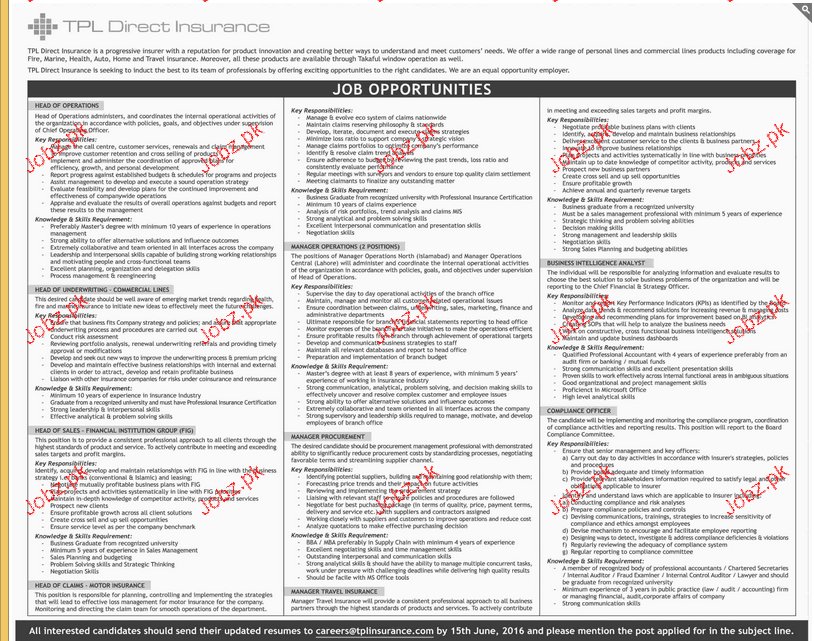 Apply as per details in job advertisement. Login to view further details of how to apply via https://www.jobz.pk online.