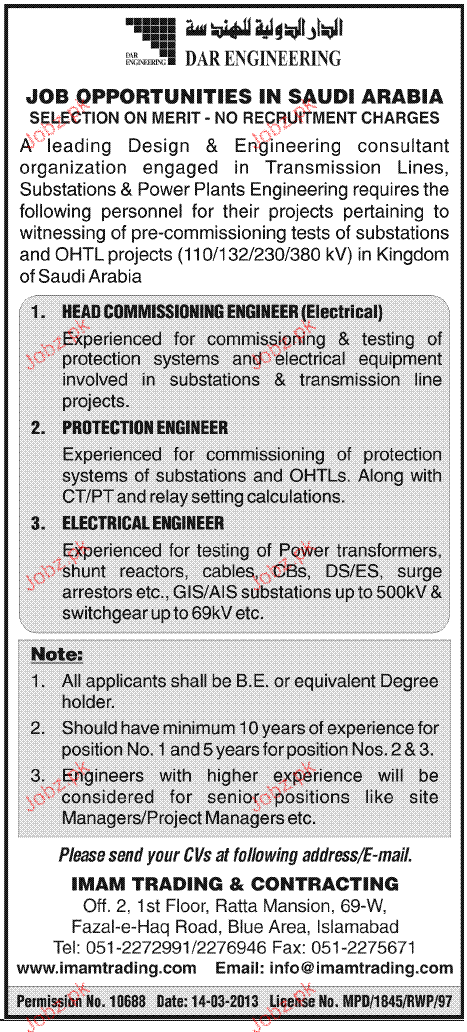Head Commissioning Engineers, Electrical Engineers Wanted