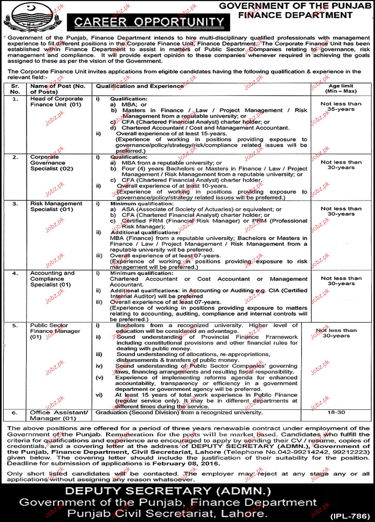 Latest Government Management Posts Lahore 2025