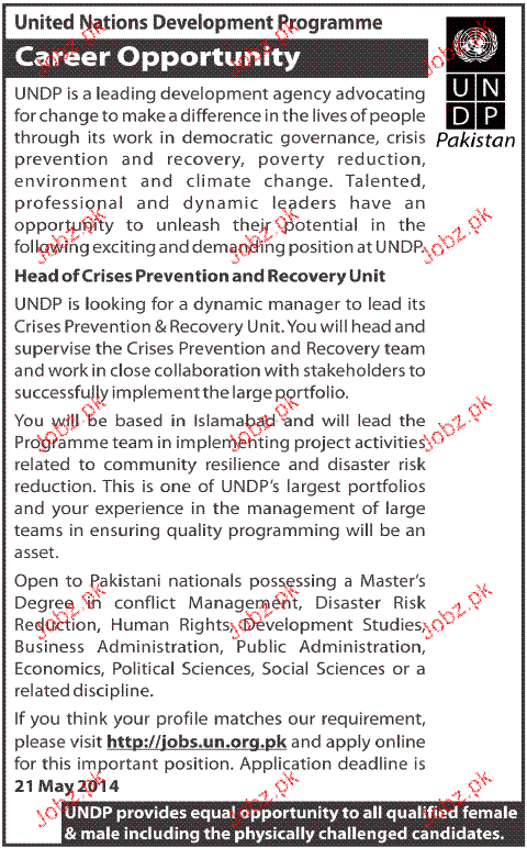 Apply as per details in job advertisement. Login to view further details of how to apply via https://www.jobz.pk online.